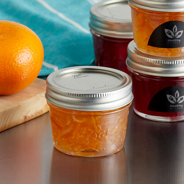 Ball 1440060802 4 oz. Regular Mouth Smooth Sided Glass Canning Jar with Silver Metal Lid and ...