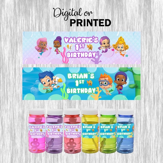 Free printable Bubble Guppies water bottle labels - Pinterest FREE Bubble Guppies water bottle label printable in PDF format. For your Bubble Guppies party. The PDF prints 3 Bubble Guppies water bottle labels.