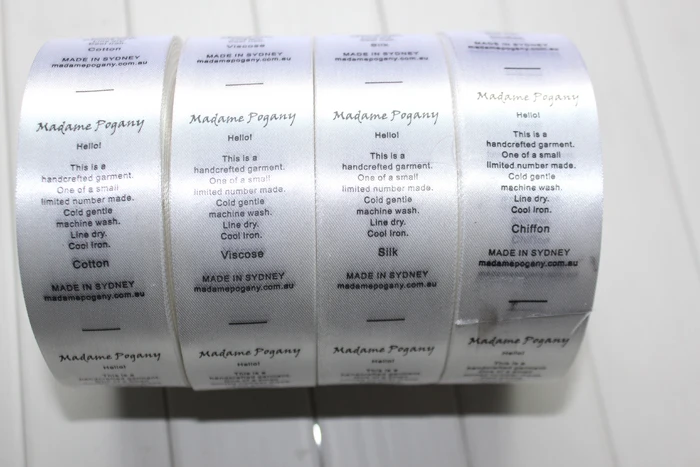 Satin Labels For The Softest Care Tags In Clothing Garments Commonly used as care and content labels, our printed satin is able to capture very small details and text that woven labels cannot. To stand out from the crowd, you may include up to 4 print colors onto our black or white satin material. Please include any extra details that may help us create your digital proof accurately in the comment section.
